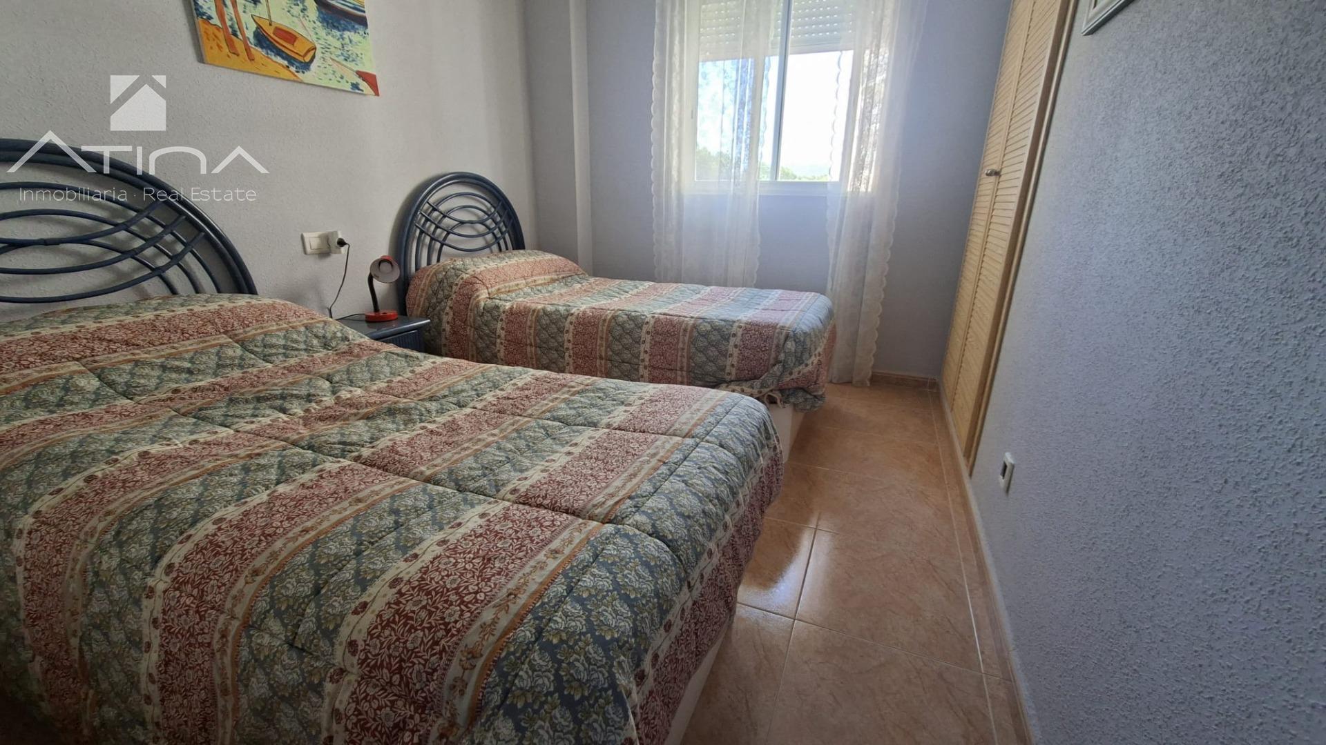 Uno de los grandes atractivos de esta propiedad es su amplia terraza, un espacio ideal para relajarse, disfrutar de veladas al aire libre o simplemente contemplar la brisa marina en un entorno de total tranquilidad. Además, el residencial cuenta con piscina comunitaria, perfecta para completar el estilo de vida mediterráneo que ofrece esta vivienda.