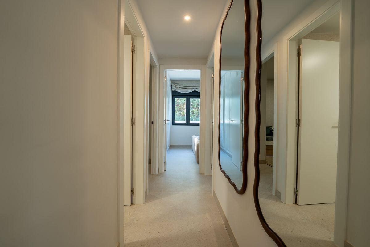 Las viviendas cuentan con carpintería exterior de PVC con doble acristalamiento y persianas motorizadas en dormitorios, puertas de acceso blindadas y acabados interiores cuidados al detalle. Los pavimentos porcelánicos de gran formato PORCELANOSA aportan uniformidad y elegancia en toda la vivienda, incluidos baños y cocina. En terrazas y zonas comunes, se ha optado por un porcelánico antideslizante de alta resistencia.